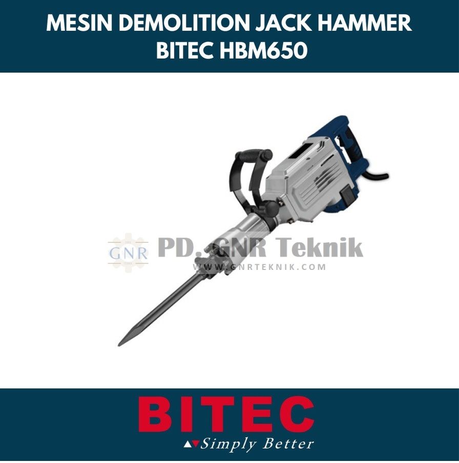 Mesin bobok beton demolition jack hammer BITEC HBM 650 12kg demolition daya : 1340 watt kapasitas : 43 Joule (1400bpm) as mata pahat : hexagon 30mm
